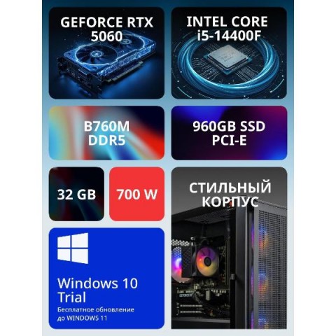 • Тип процессора:Intel Core i5 14400F 2.5 ГГц