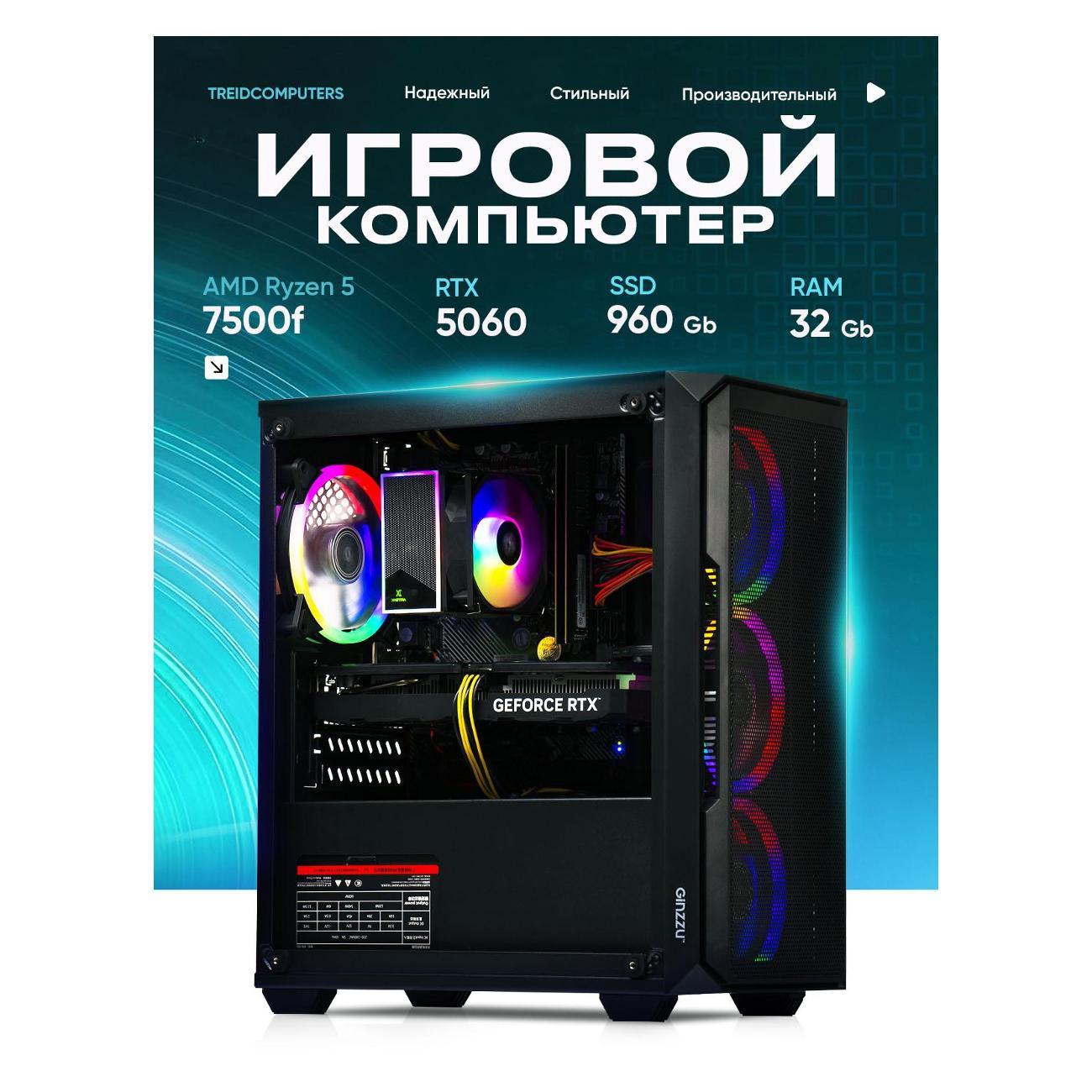 Системный блок Treidcomputers Игровой компьютер Treidcomputers AMD Ryzen 5 7500f RTX 5060 32/960GB