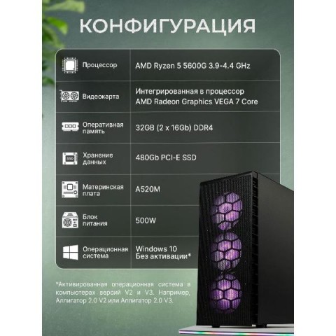 • Тип процессора:AMD Ryzen 5 RYZEN 5 5600G 3.9 ГГц