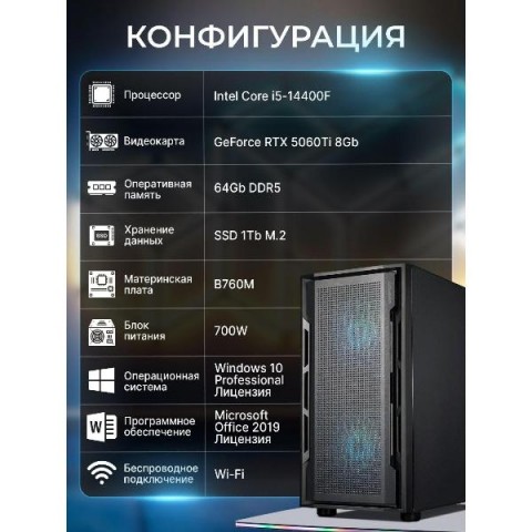 • Тип процессора:Intel Core i5 14400F 2.5 ГГц