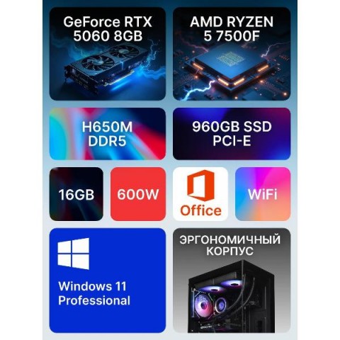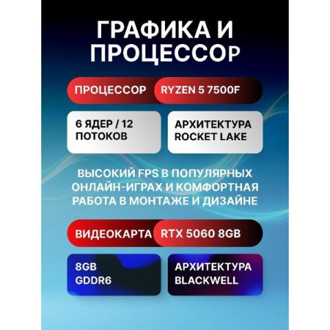 • Тип процессора:AMD Ryzen 5 7500F 3.7 ГГц