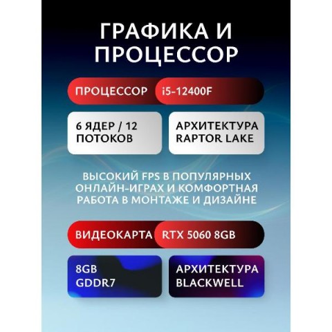 • Тип процессора:Intel Core i5 12400F 2.5 ГГц