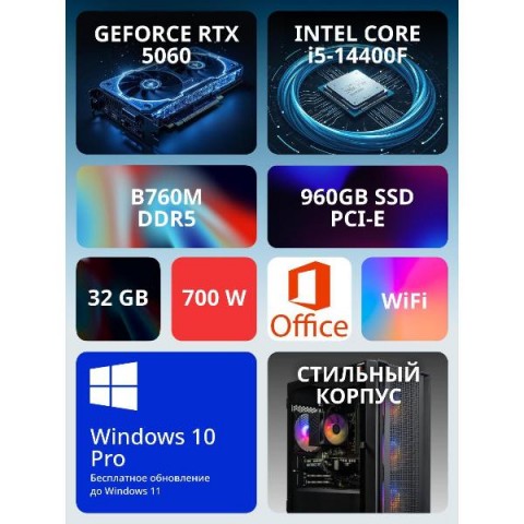 • Тип процессора:Intel Core i5 14400F 2.5 ГГц