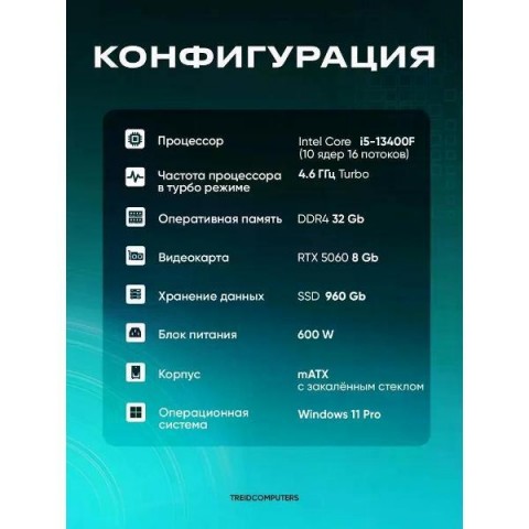 • Тип процессора:Intel Core i5 13400f 2.5 ГГц