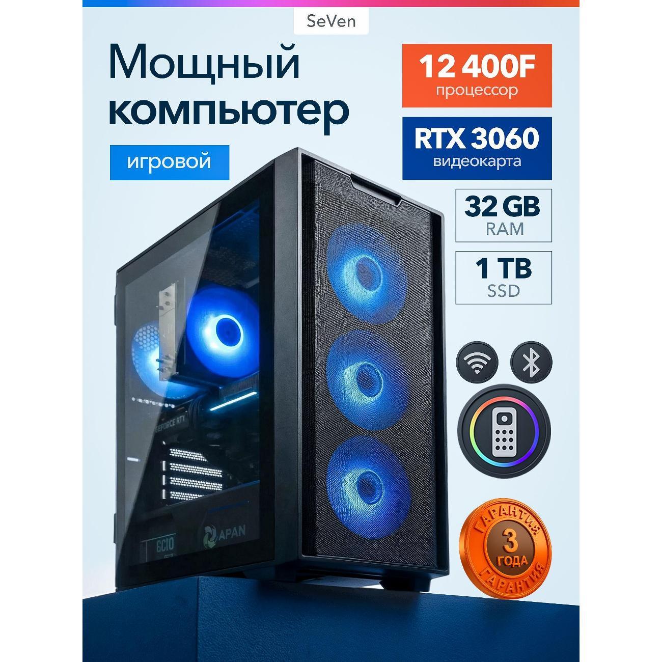 Системный блок Роскомп Intel Core i5-12400F, RTX 3060 12ГБ, ОЗУ 32ГБ, SSD 1024ГБ, H610, 600W