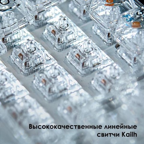 • Корпус переключателя для клавиатуры:подсветка, без стабилизаторов, прозрачный корпус, смазанная направляющая