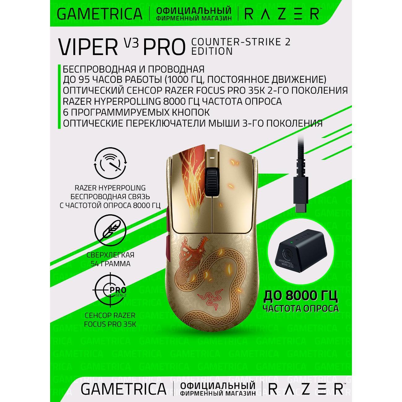 Компьютерная мышь беспроводная Razer Viper V3 Pro, Counter-Strike 2