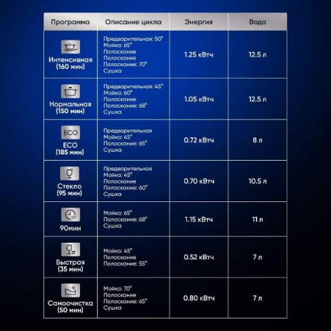 • Количество программ мойки:7