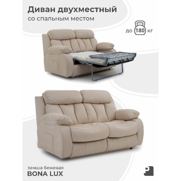Диван PEREVALOV BONA LUX раскладной со спальным местом, замша бежевый