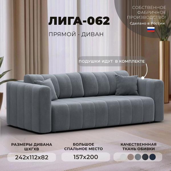 Диван Лига Диванов прямой Лига-062 НПБ, велюр TOWER 10 серый
