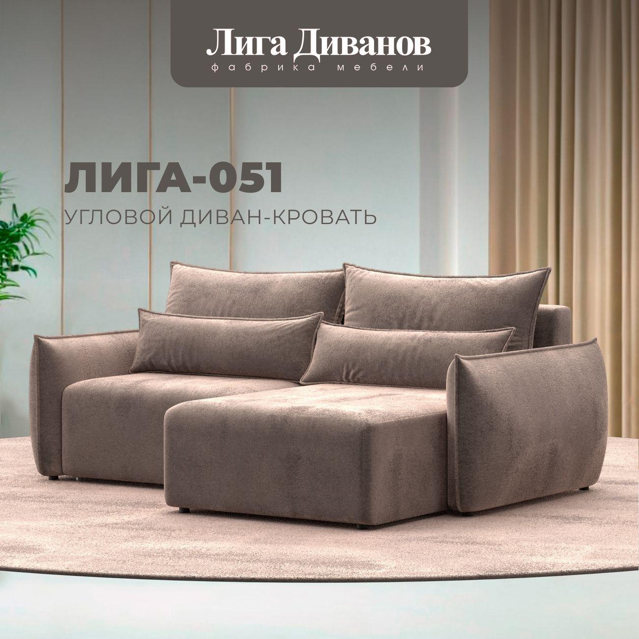 Диван Лига Диванов угловой Лига-051 НПБ, велюр TOWER 10 серый