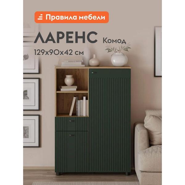 Комод Правила мебели для одежды и хранения вещей Ларенс с ящиком, с полками, 90.1х41.6х128.6 см, Дуб золотой / Олива софт