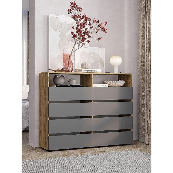 Комод Правила мебели для одежды и хранения вещей Асми с ящиками, с полками, 120.2х37.2х96.6 см, Крафт / Графит