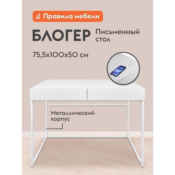 Стол компьютерный Правила мебели Блогер с ящиками, 100х50х75.5 см, белый / белый,