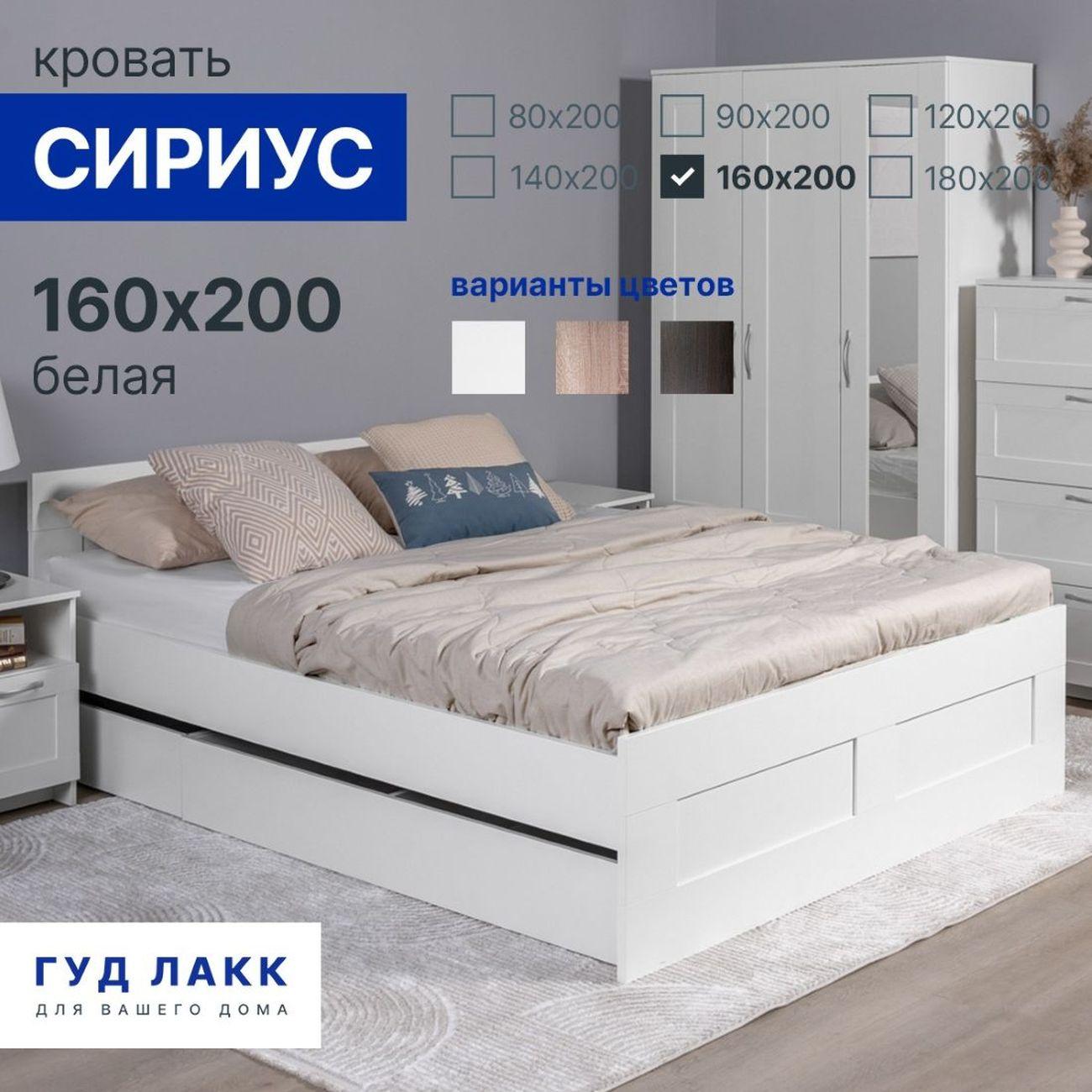 Кровать Гуд Лакк Сириус двойная 160х200 белый 2.02.04.610.1