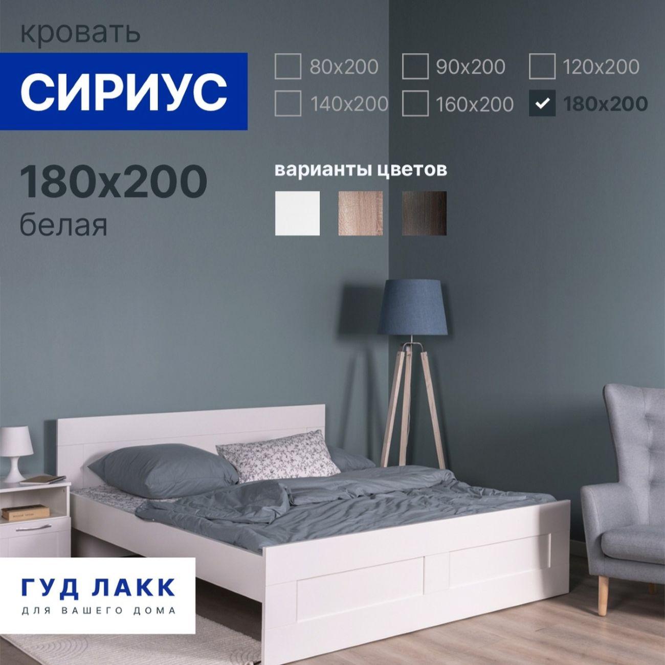 Кровать Гуд Лакк Сириус двойная 180х200 белый 2.02.04.620.1