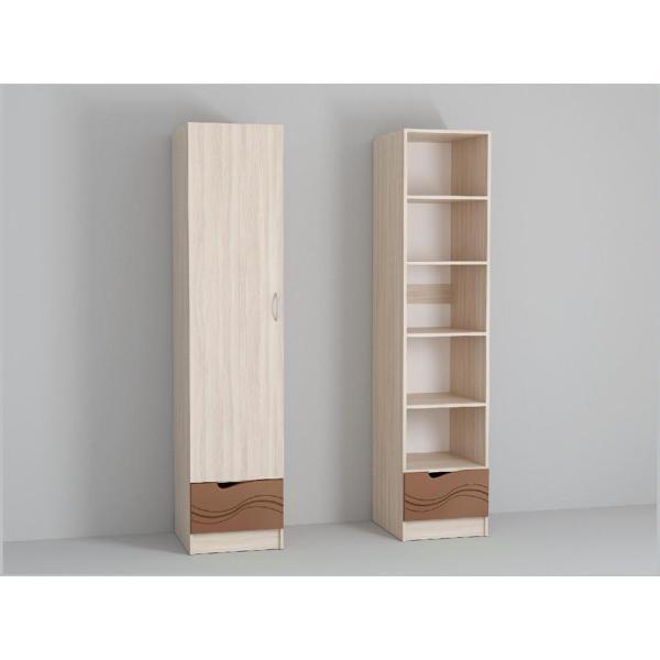 Шкаф распашной Диал Пенал МДФ, Ясень шимо светлый/Шоколад (волна)