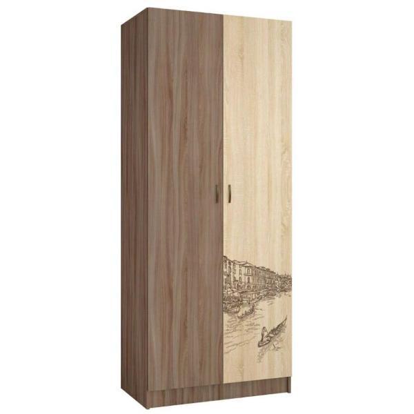 Шкаф Правила мебели Рейн 2 двери с полками, с ящиками, со штангой, 80х50х210 см, Дуб Крафт табачный / Кашемир