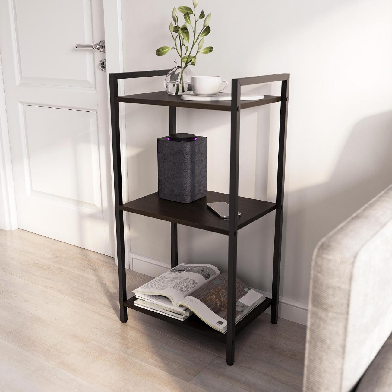 Стеллаж Правила мебели Кымор, прямой, открытый, на ножках, 49х37х198 см, Черный