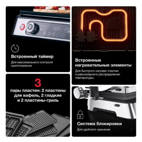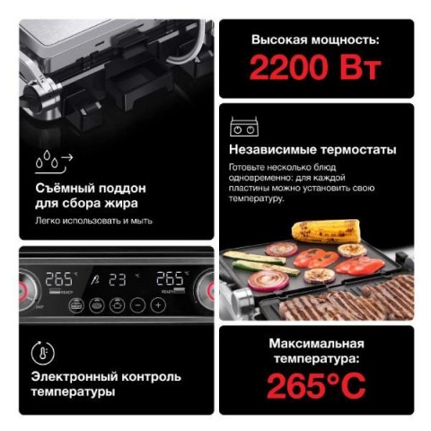 • Рабочая поверхность гриля:верхняя/нижняя
