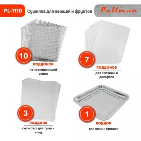 • Поддонов для сушки:10  шт
