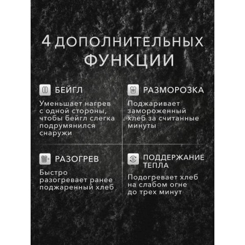 • Моторизированная функция:подъем тостов, загрузка тостов