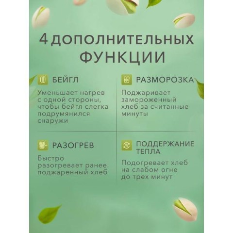 • Моторизированная функция:подъем тостов, центрирование