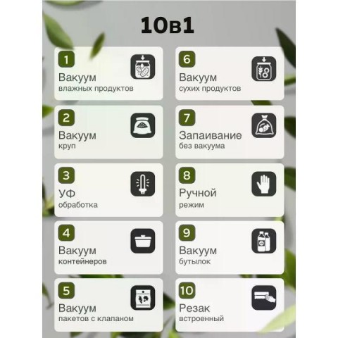 • Регулировка интенсивности вакуума:Да