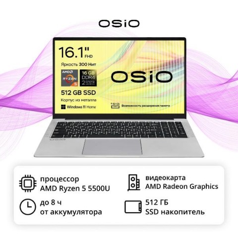 • Процессор:AMD Ryzen 5 5500u 2.1 ГГц