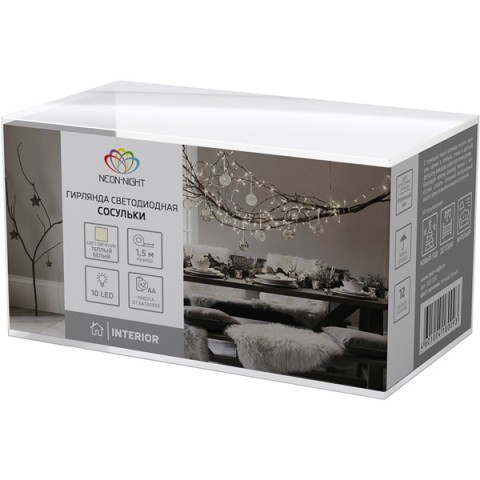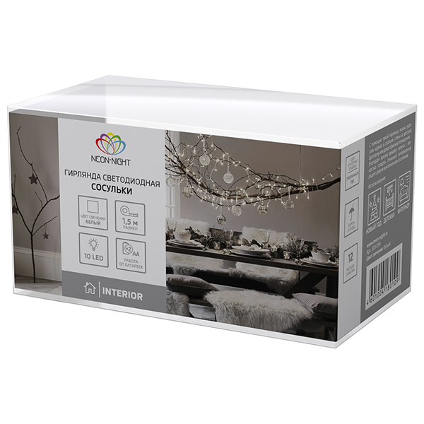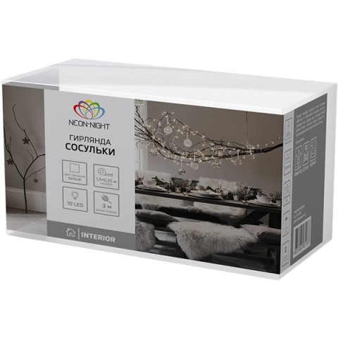 Гирлянда светодиодная NEON-NIGHT Сосульки 1,5м 10 LED белая (303-094)