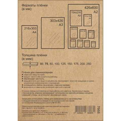 • Тип пленки:Глянцевая
