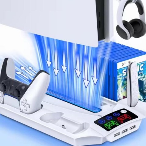 • Назначение:Вертикальная подставка с активным охлаждением для консоли PS5 с зарядкой контроллеров DualSense
