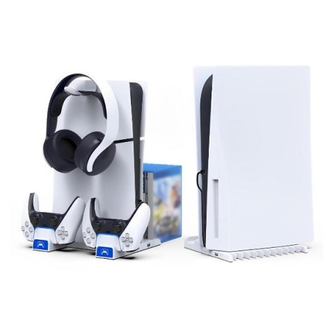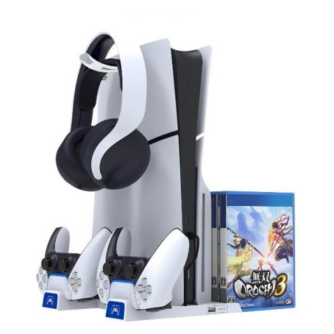 • Назначение:Вертикальная стойка для PS5 Slim с зарядкой геймпадов, держателем дисков и наушников