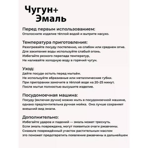 • Нагрев:на газовых конфорках, на галогеновых конфорках, на индукционных конфорках, на стеклокерамических конфорках, на чугунных конфорках