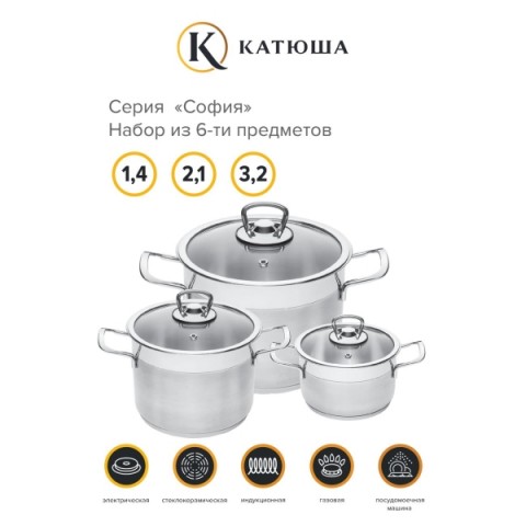 • Объем кастрюли:2.3/ 3.1/ 5.7 л