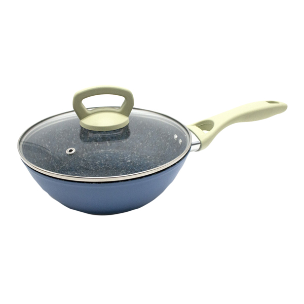 Корпус гранитной сковороды может изготавливаться из различных сплавов, но чаще всего применяется алюминий. Этот материал прочный и одновременно лёгкий, благодаря чему пользоваться посудой комфортно одной рукой.