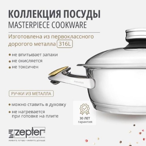 • Использование:в духовке, на газовой конфорке, на галогеновой конфорке, на стеклокерамической конфорке, на чугунной конфорке