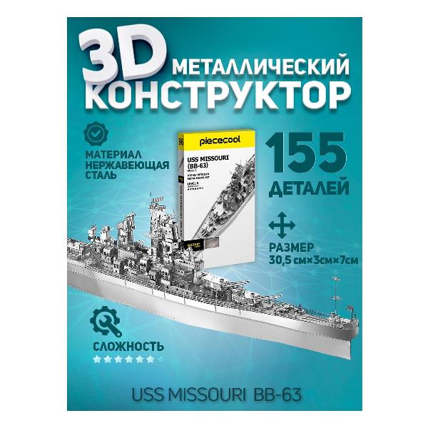 Вы можете купить 3D-конструктор из металла Piececool Uss Missouri (BB-63# в магазинах М.Видео по доступной цене. 3D-конструктор из металла Piececool Uss Missouri (BB-63#: подробное описание, фото и отзывы реальных покупателей, характеристики, возможность скачать инструкции и подобрать аксессуары.
