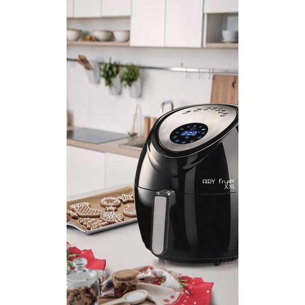 Аэро-фритюрница Ariete 4618/00 — устройство с семью предустановленными программами приготовления, оснащенная 5,5-литровой корзиной (XXL). Предназначена для одновременной загрузки до 2,5 кг сырого картофеля. Съемная чаша дополнена антипригарным покрытием, которое значительно упрощает уход за устройством и позволяет использовать минимум масла для приготовления. Температура регулируется от 80°C до 200°C — за контроль этого показателя отвечает встроенный термостат. Для управления используется сенсорный дисплей.