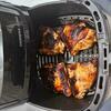 хороший аэрогриль за свою цену, большой объём чаши хватит на семью из 4человек, понравился дизайн, смотровое окошко даёт возможность наблюдать за процессом , 8 автоматических программ основных блюд, кто то пишет про запах, в инструкции прямо написано, что перед применением нужно включить на любую программу и прогреть до 20 мин., без пищи и будет вам счастье, кто то пишет снять с ножек решетки вкладыши, но там голимый острый металл остаётся и где гарантия, что он не повредит тефлоновое покрытие чаши и оно не вздуется, изучайте перед применением инструкцию и наслаждайтесь любимыми блюдами.