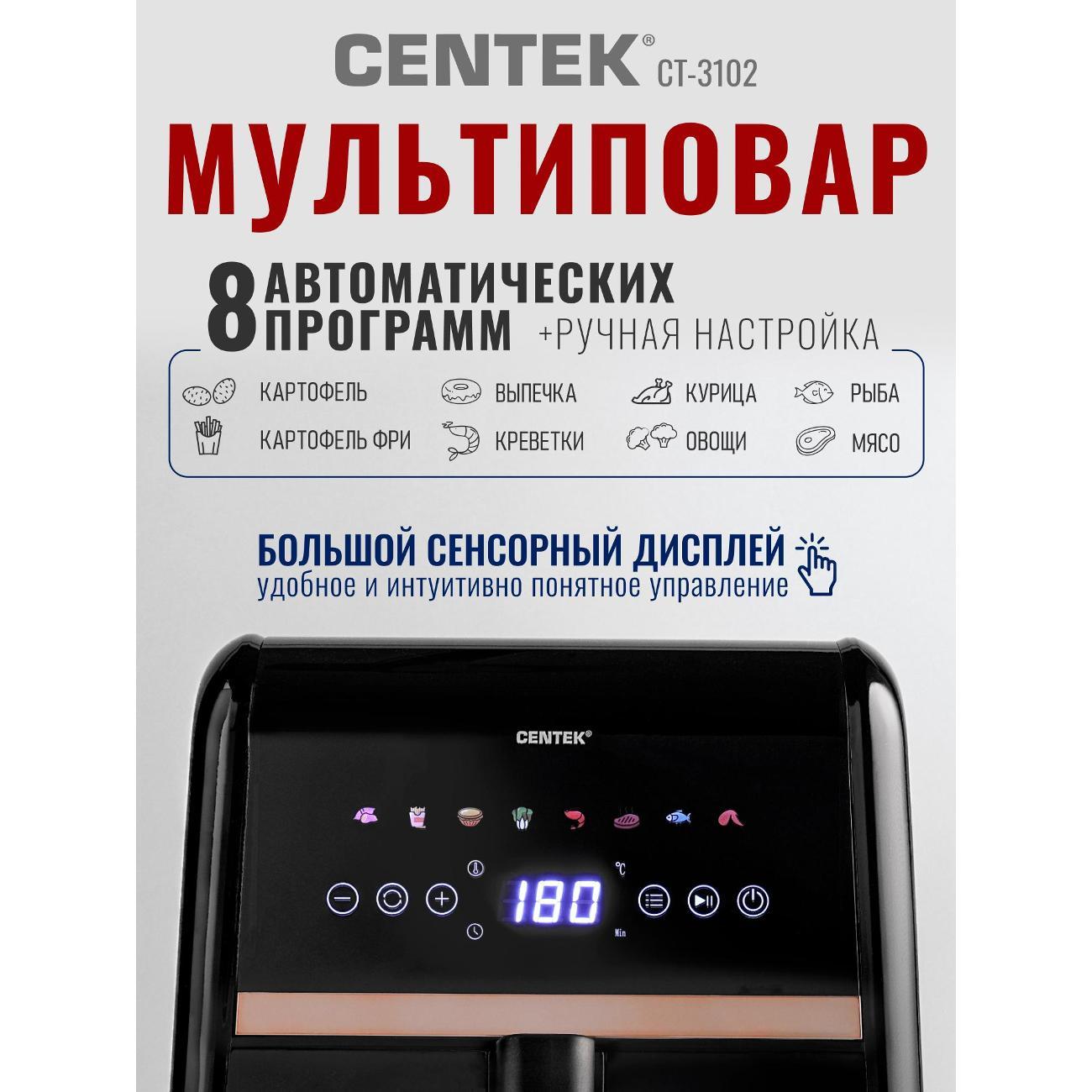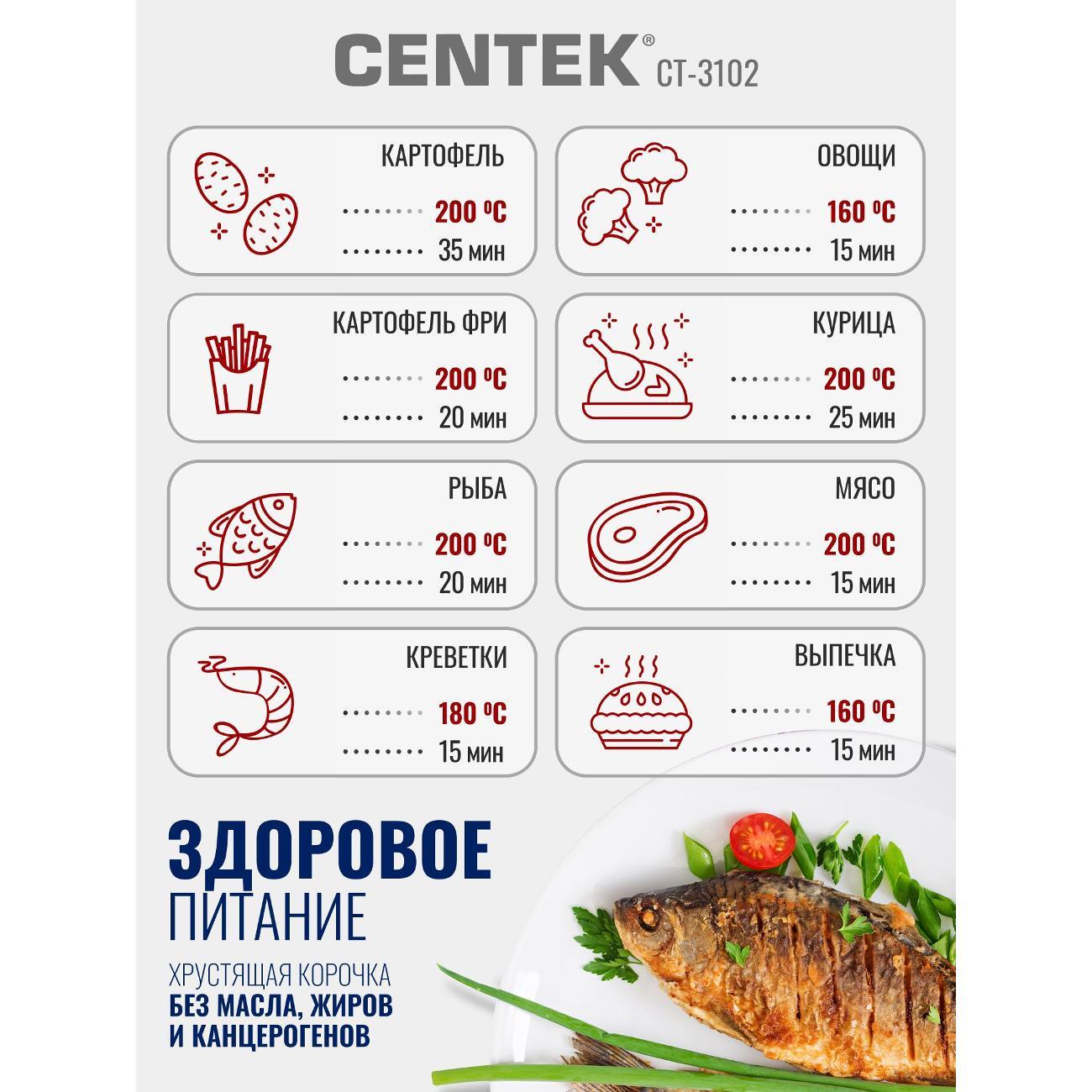 Вы можете купить Аэрогриль Centek CT-3102 в магазинах М.Видео по доступной цене. Аэрогриль Centek CT-3102: подробное описание, фото и отзывы реальных покупателей, характеристики, возможность скачать инструкции и подобрать аксессуары.