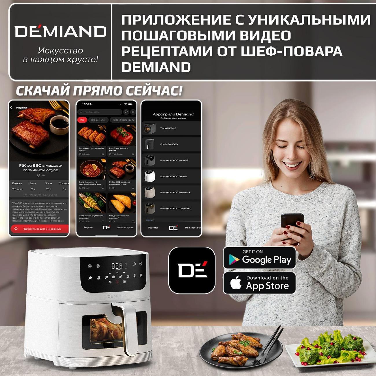 Вы можете купить Аэрогриль DEMIAND Leo 5 в 1 белый (DK-2500) в магазинах М.Видео по доступной цене. Аэрогриль DEMIAND Leo 5 в 1 белый (DK-2500): подробное описание, фото и отзывы реальных покупателей, характеристики, возможность скачать инструкции и подобрать аксессуары.