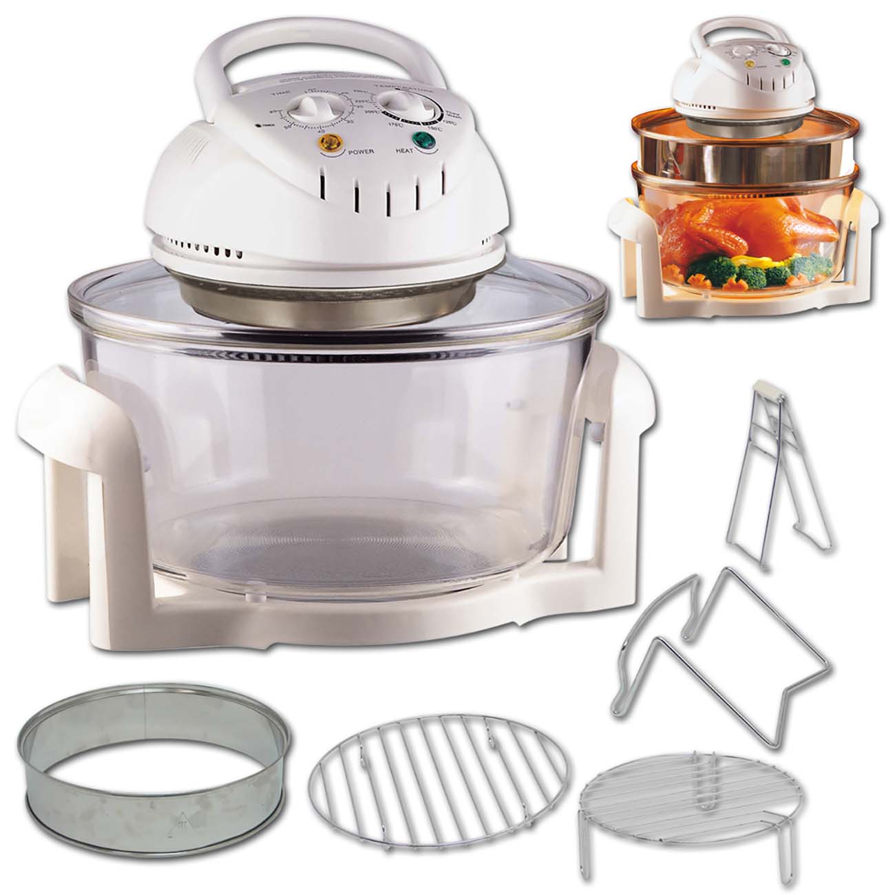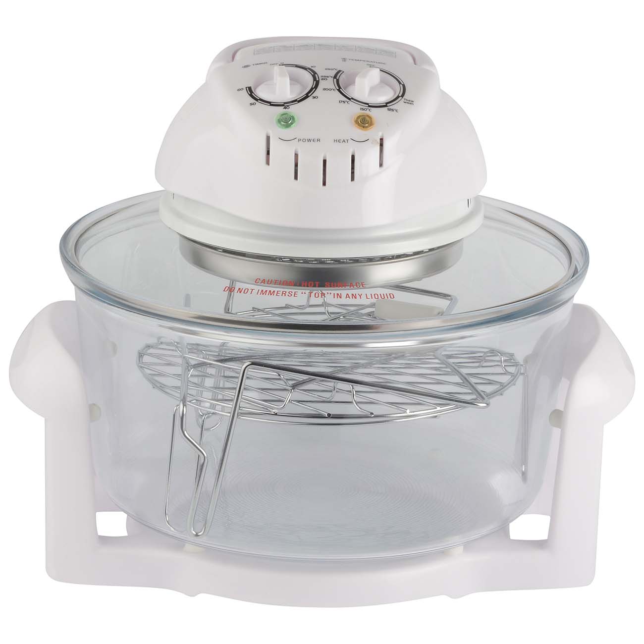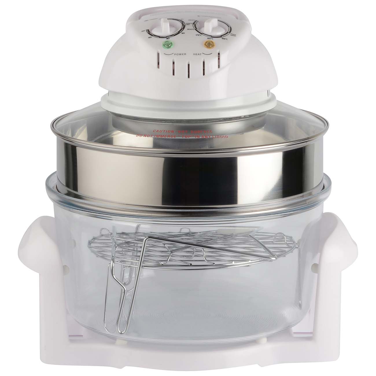 Аэрогриль First FA-5030-1 построен на основе галогенового нагревателя. Уже через пару минут после включения он подаёт мощные потоки горячего воздуха, обжаривая и запекая продукты без масла.