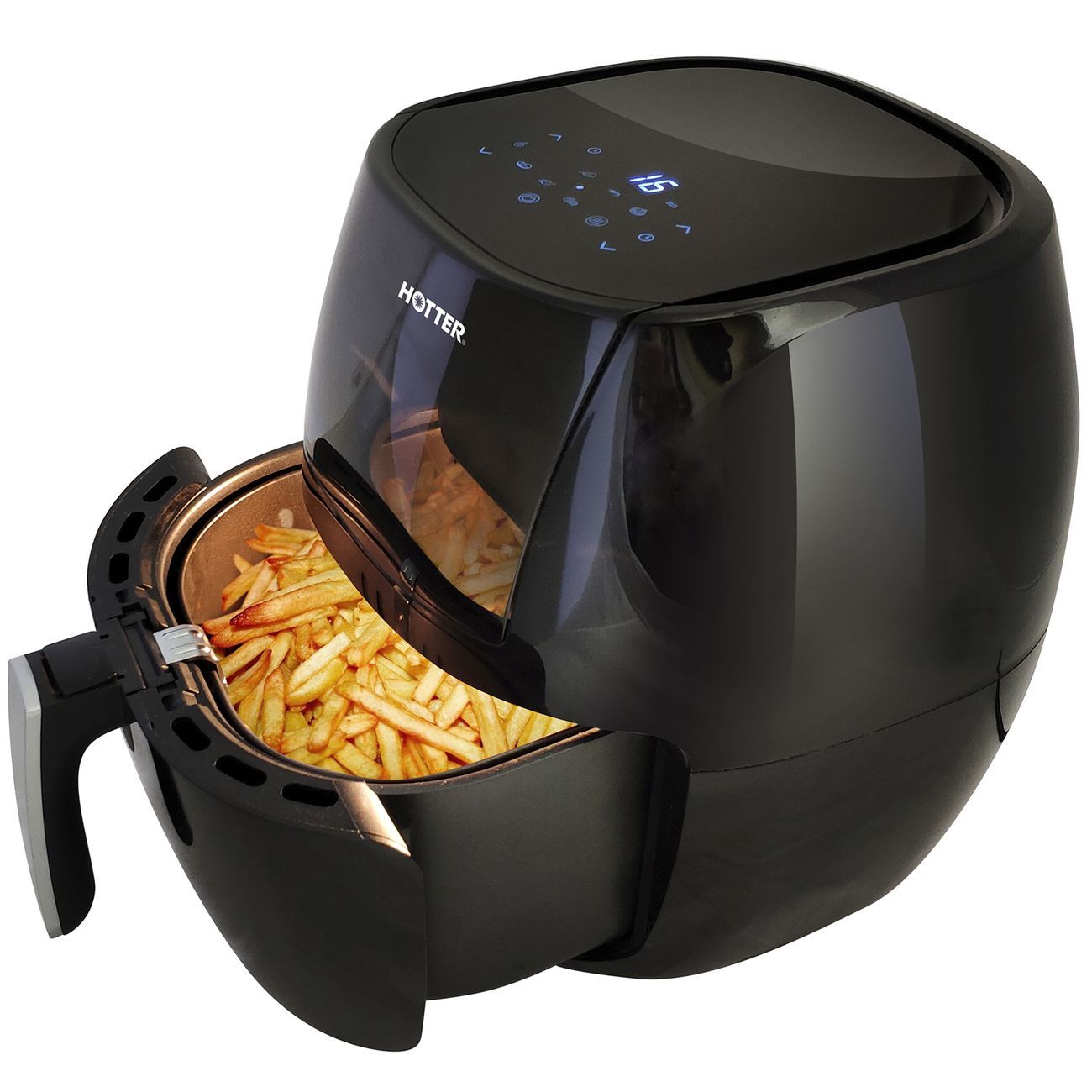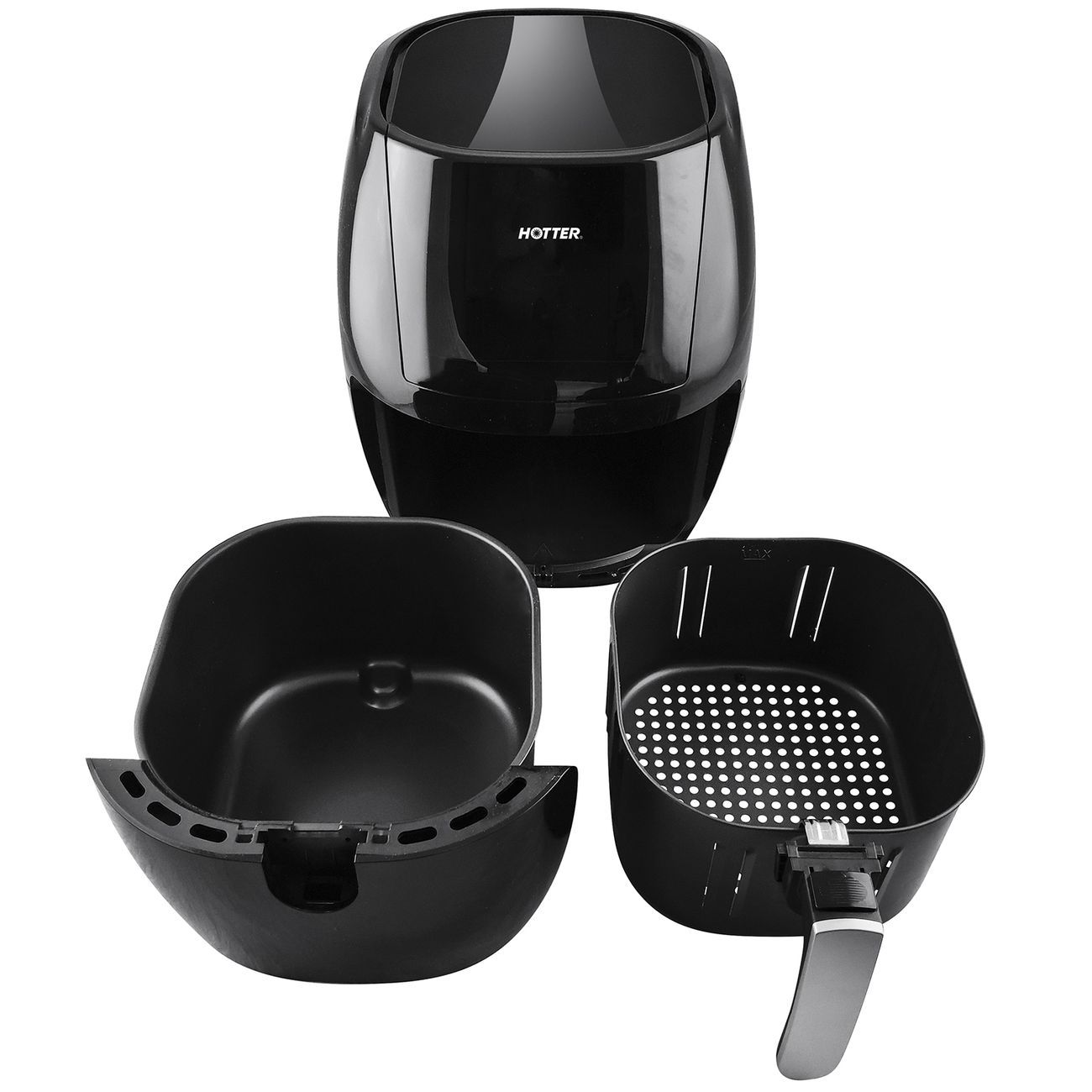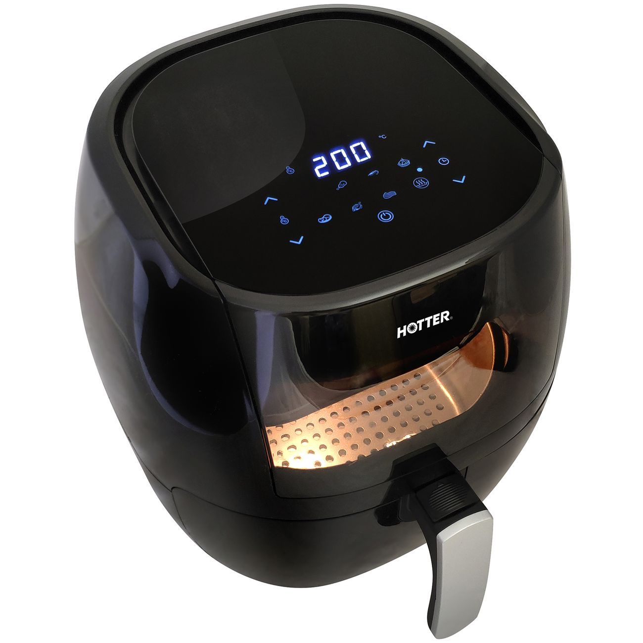 Hotter HX-706 — аэрогриль с антипригарным покрытием и поддоном объемом 7,7 л. Комплектуется корзиной объемом 6 л. Для нагрева используется ТЭН мощностью 1,8 кВт, который разогревает аппарат до температуры 200°. Минимальная температура нагрева — 80°. Аэрогриль управляется с помощью цифровой панели, расположенной на верхней части корпуса. Есть таймер на 60 минут, режим разогрева еды и восемь программ приготовления блюд. Размеры аэрогриля — 370 х 360 х 260 мм. Длина шнура — 1 м.