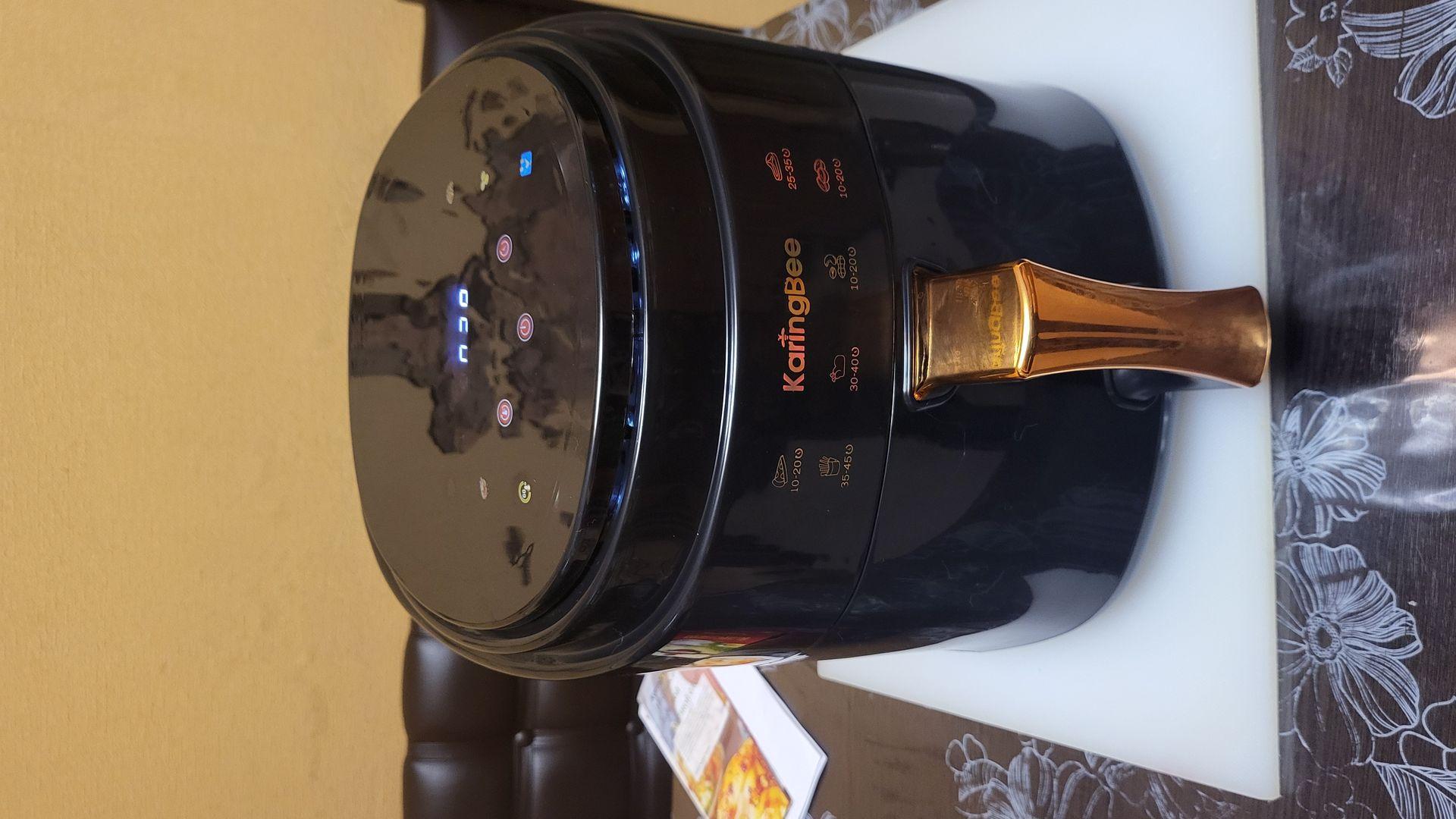 Отличный аэрогриль, ждала его две недели,очень большая чаша для такой стоимости,почитала инструкцию,посмотрела рецепты,что то можно найти в интернете. Есть сигнал включения выключения,красивый дизайн,удобно мыть.