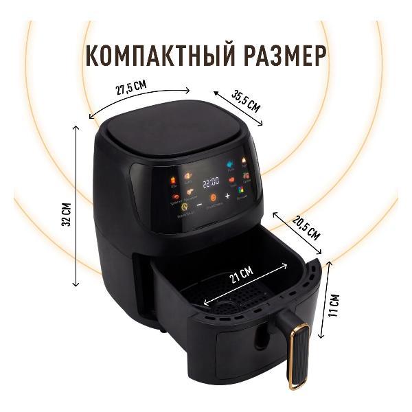Внутри всё прожаривается, снизу не подгорает. Шума немного, на кухне не мешает. Размер средний, на столе не громоздится. Вещь практичная.