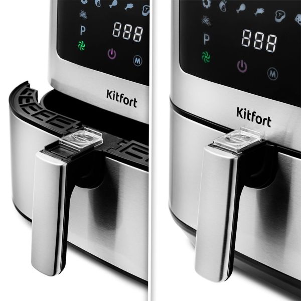 Аэрогриль Kitfort КТ-2221 в корпусе из ударопрочного пластика черного и стального цветов используется для выпечки, жарки мяса, рыбы, морепродуктов. Размеры прибора — 33х26,5х33 см, вес — 4,65 кг. Съемная чаша объемом 3,3 л снабжена антипригарным покрытием. Термоизолированная ручка обеспечивает безопасное использование. Устройство оборудовано термометром и противоскользящими ножками.