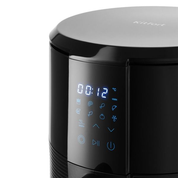 Аэрогриль Kitfort КТ-2237 мощностью 1300 Вт оснащен восемью программами приготовления пищи, сенсорная панель управления позволяет задавать собственные параметры работы. Таймер рассчитан на 1 час, время варьируется от 80°С до 200°С. Основной принцип работы — постоянная циркуляция горячего воздуха, что позволяет получить аппетитную корочку и сохранить сочность блюда.