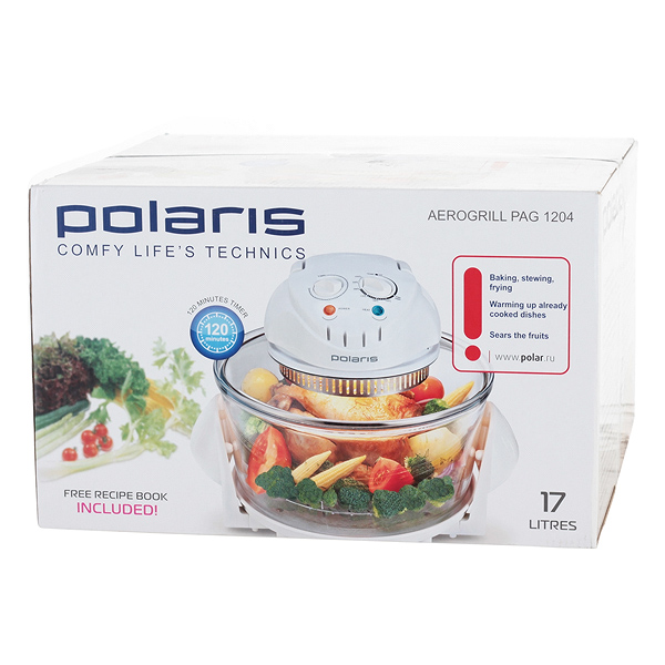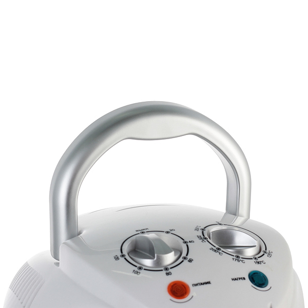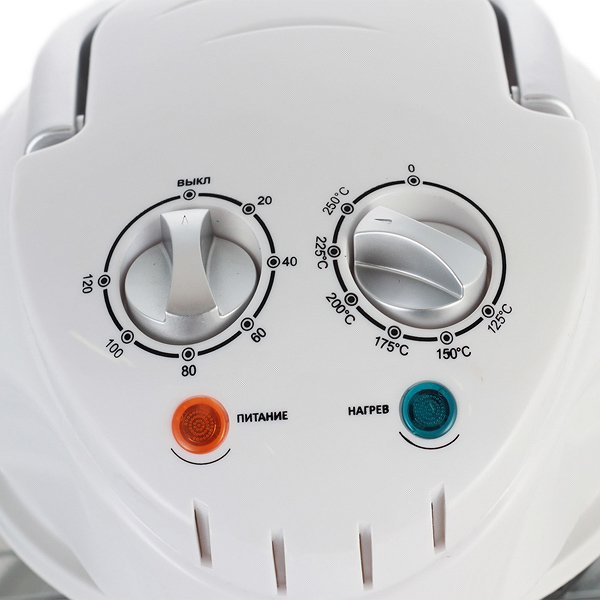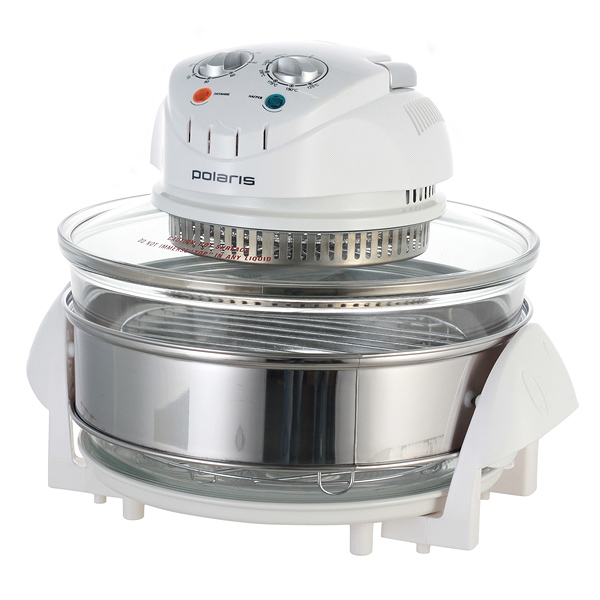Пользуюсь данным аэрогрилем 2 года. Плюсы: отлично готовится всё, что можно приготовить в горшочках. При условии, что блюдо требует приготовления с закрытой крышкой (мясо, жульен, овощное рагу). Как только крышка снимается, то верх блюда сразу пригорает (при требуемой температуре). Из-за этих пригораний приходится идти на хитрости: запеканку ребенку делаю в два этапа. Сначала 15-20 минут готовлю основную часть, а когда уже корочка начинает появляться, заливаю жидкой сметаной, чтобы протянуть без пригораний еще 15-20 минут, а если этого не сделать, то сверху будет горелая корочка. Если уменьшить температуру, не пропечётся. Отлично готовятся блюда в фольге, но надо ставить пониже, опять же чтобы не пригорело. Лазанью, например, тоже приходится фольгой закрывать, чтобы не высушилась и не сгорела сверху. Еще из минусов: со временем вообще стерлась краска, отражающая время и температуру. Крышка у меня сейчас абсолютно белая, но за 2 года можно выучить, где какие цифры были)). Мыть чашу хрупкой девушке в мелкой раковине довольно затруднительно: она тяжелая и громоздкая, поэтому прошу мужа))) Выпечку не делаю - не пропекается середина. В общем, если бы покупала новый, то обязательно взяла бы с регулировкой скоростей вентилятора - здесь она всего одна (максимальная).
