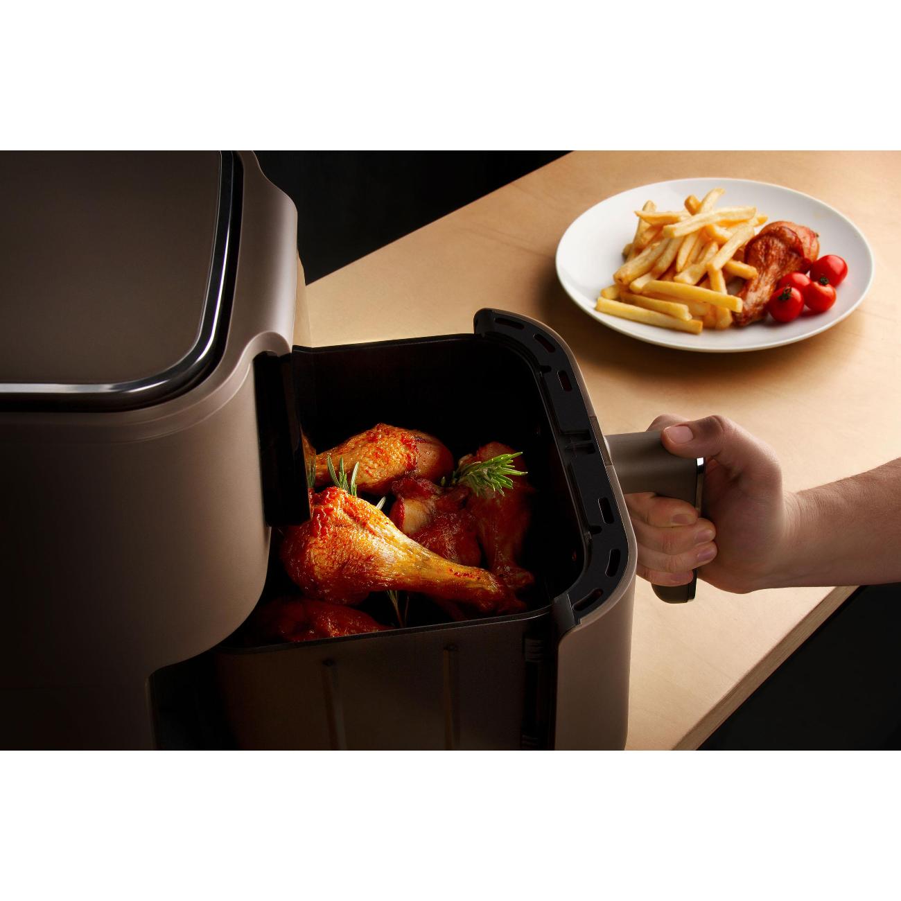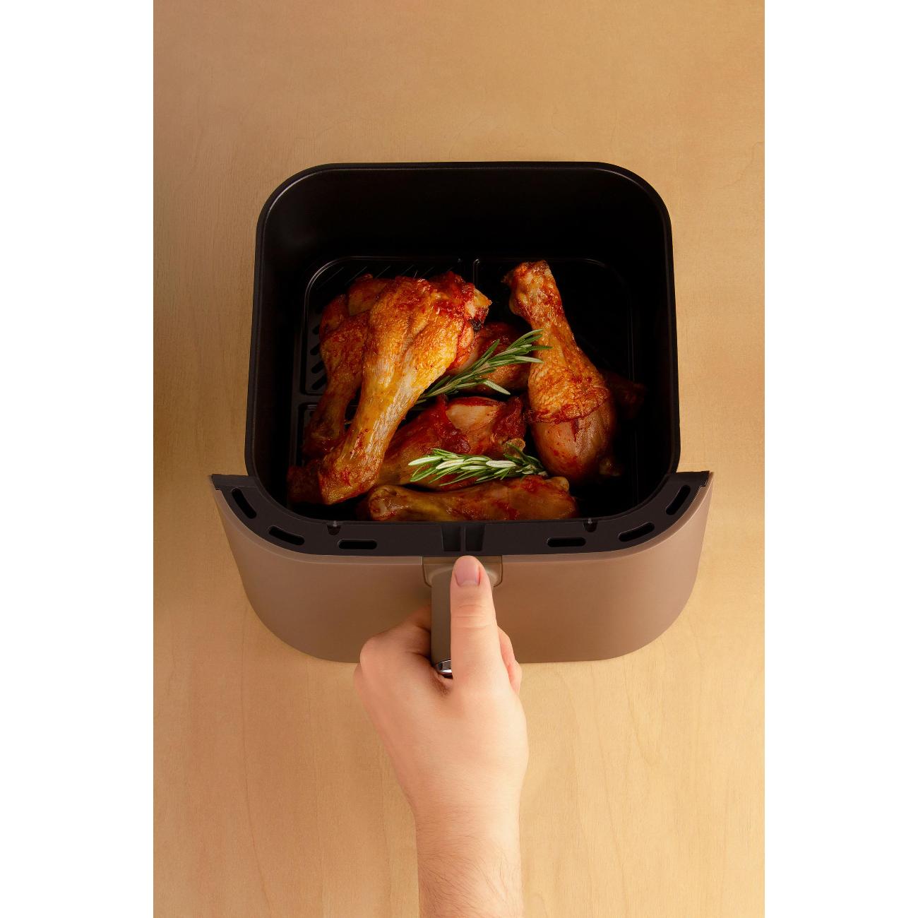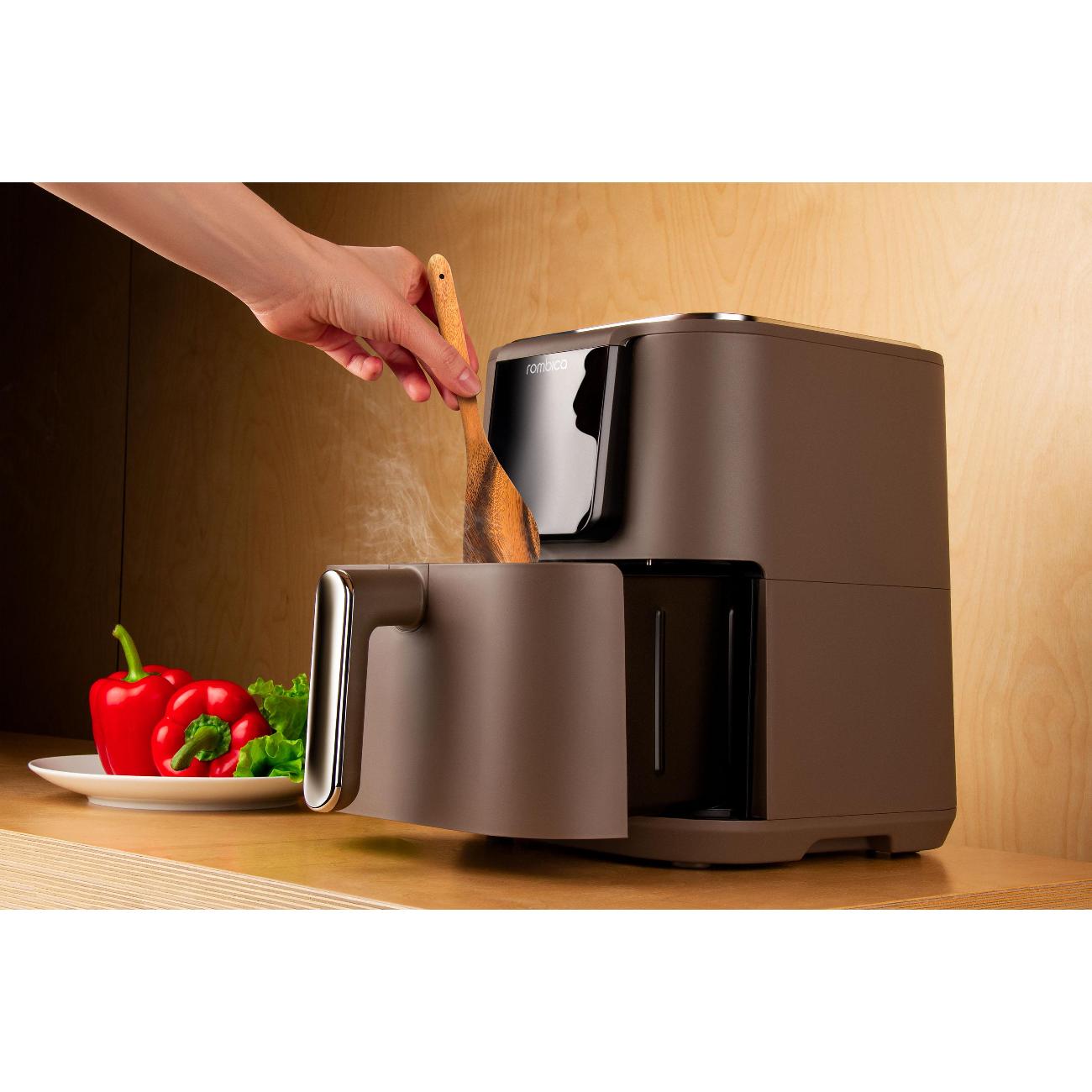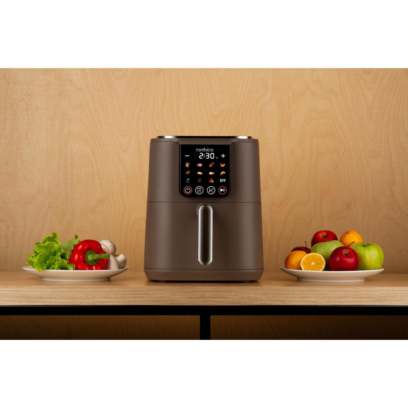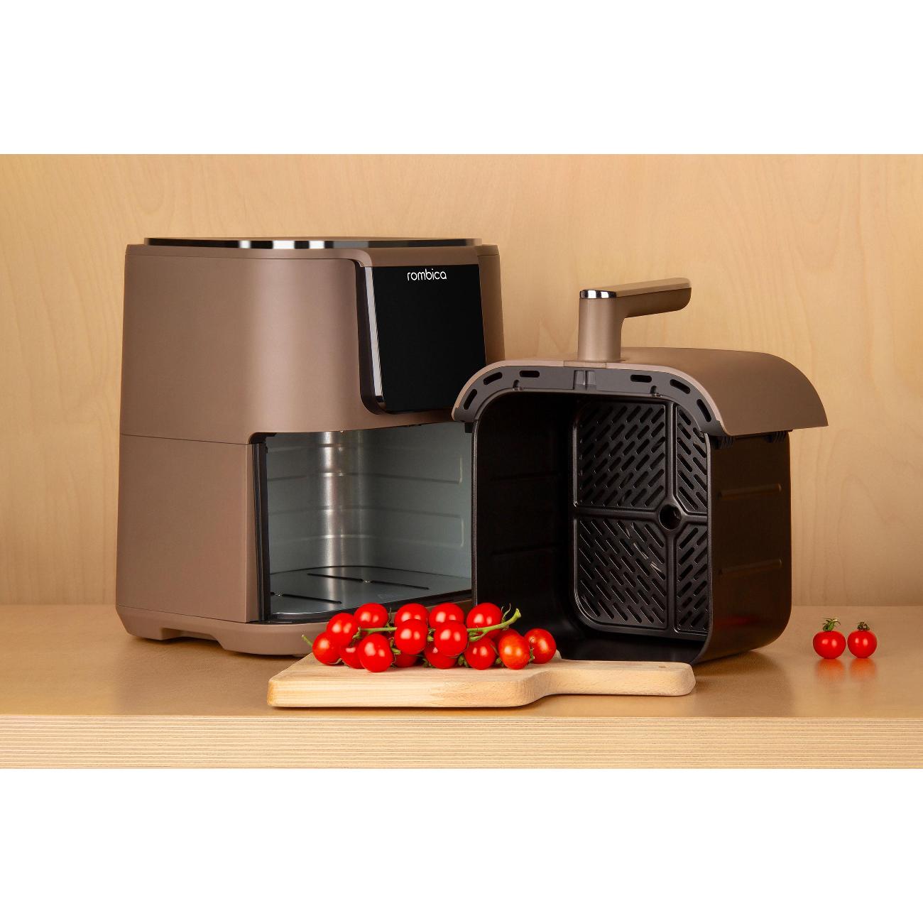 Аэрогриль Rombica myKitchen AFR-004 мощностью 1500 Вт оснащен скрытым нагревательным элементом. Система быстрой циркуляции воздуха обеспечивает равномерное воздействие для обжаривания со всех сторон.